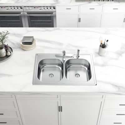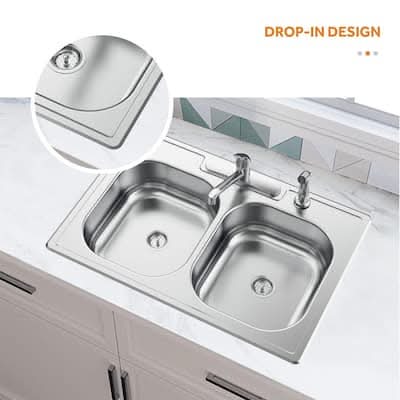 Glacier Bay 33 In. Drop-In 50/50 Double Bowl 22 Gauge Stainless Steel Kitchen Sink