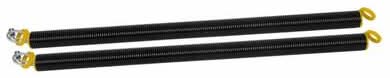 The Everbilt 130 lbs. Extension Springs (2-Pack) are made of spring steel and designed to be mounted perpendicular above the horizontal track of the garage door. They stretch to provide lifting power for the garage door. The springs have a safety cable inside to prevent injury in case of accidental breakage. This product contains chemicals known to the State of California to cause cancer and birth defects or other reproductive harm. For more infomation go to www.P65Warnings.ca.gov