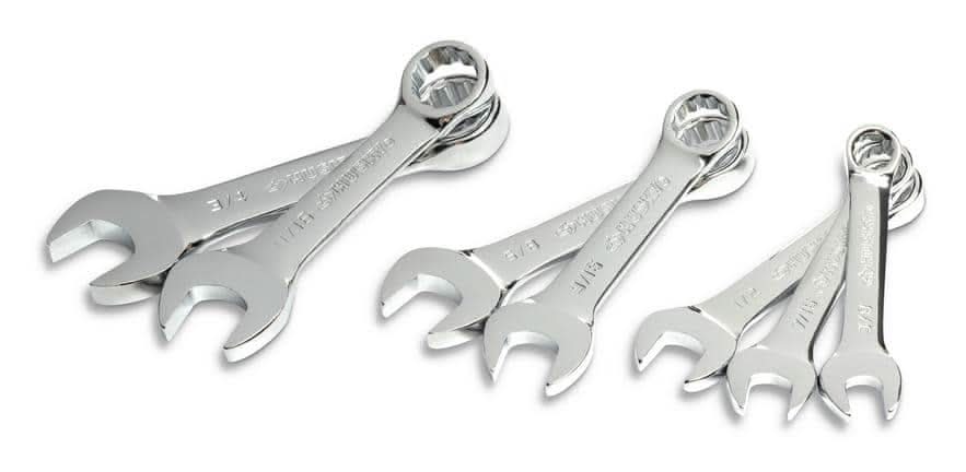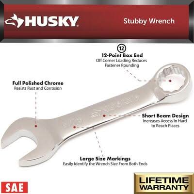 Husky stubby combination wrenches are forged from chrome alloy steel for outstanding durability and strength. The shorter beam design provides access to hard-to-reach fasteners in locations where a standard length wrench just won't fit. This set of Husky stubby combination wrenches is the perfect set to complete the toolbox of the professional or DIY mechanic. WARNING: Cancer risk and reproductive harm from exposure to DEHP (di-2-ethylhexyl phthalate). See www.P65Warnings.ca.gov.