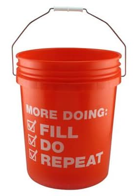 Use the 5 gal. Orange Homer Bucket to haul parts, paint, topsoil and other household and work-site items. This orange, plastic bucket holds up to a 9 in. bucket grid. The bucket features the orange Home Depot logo on its side. • Color: Orange • Size: 9 in
