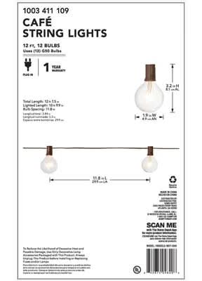 Hampton Bay 12-Light 12 Ft. Large Cafe Clear String Lights