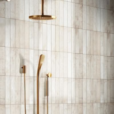 The Camden Biscotti 2 in. x 10 in. Glossy Ceramic Subway Wall Tile captures rustic vintage charm with its distressed finish and neutral cream-beige tones. Mimicking the look of reclaimed or aged materials, this ceramic subway tile features subtle variations in shading and a worn texture, evoking a timeworn, farmhouse-inspired aesthetic. The low-sheen glossy surface enhances the natural, weathered design while adding a touch of refinement. Perfect for creating cozy backsplashes, accent walls, or bathroom designs, this tile pairs beautifully with warm wood tones, antique finishes, and earthy color palettes for a nostalgic and inviting look.