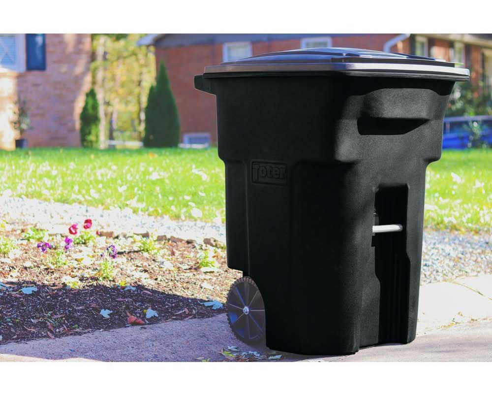Toter 96 Gallon Black Rolling Outdoor Garbage/Trash Can With Wheels And Attached Lid