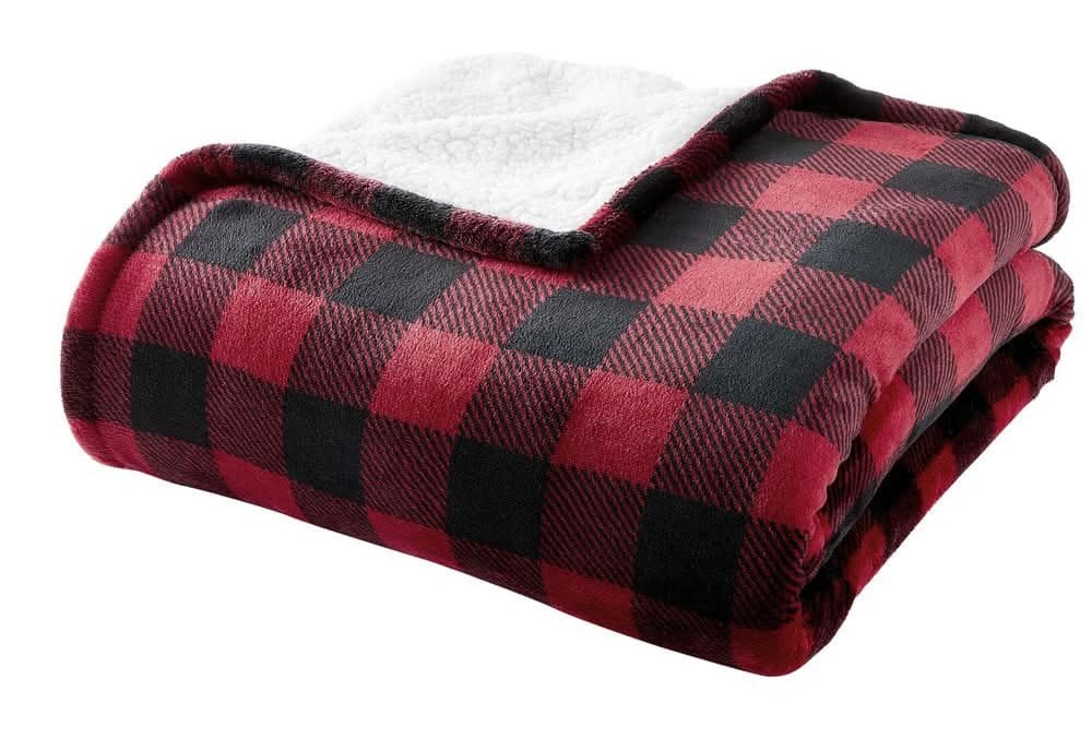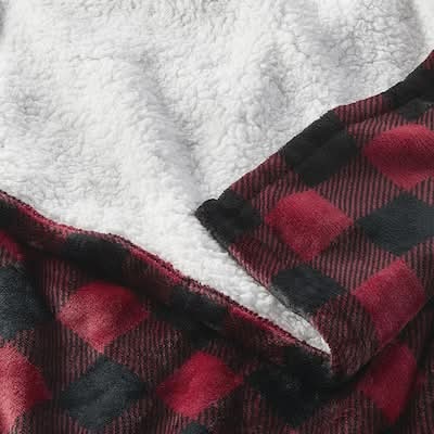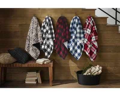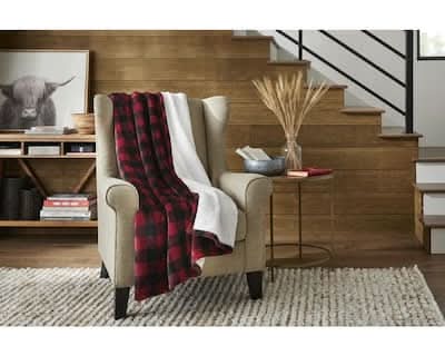 Home Decorators Collection Plush Red Buffalo Check Sherpa Throw Blanket