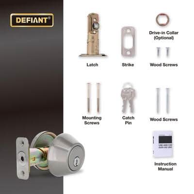 This lock features a radius latch with an adjustable backset and optional drive-in feature. Defiant keyed locks can be re-keyed to fit your existing KW1 keyway. The powder coated finish will provide years of durability. When used as a replacement lock, only a screwdriver is needed to make installation a snap. Featuring a limited lifetime guarantee, Defiant meets or exceeds ANSI Grade 3 Standards for residential use. WARNING: Cancer and Reproductive Harm - www.P65Warnings.ca.gov