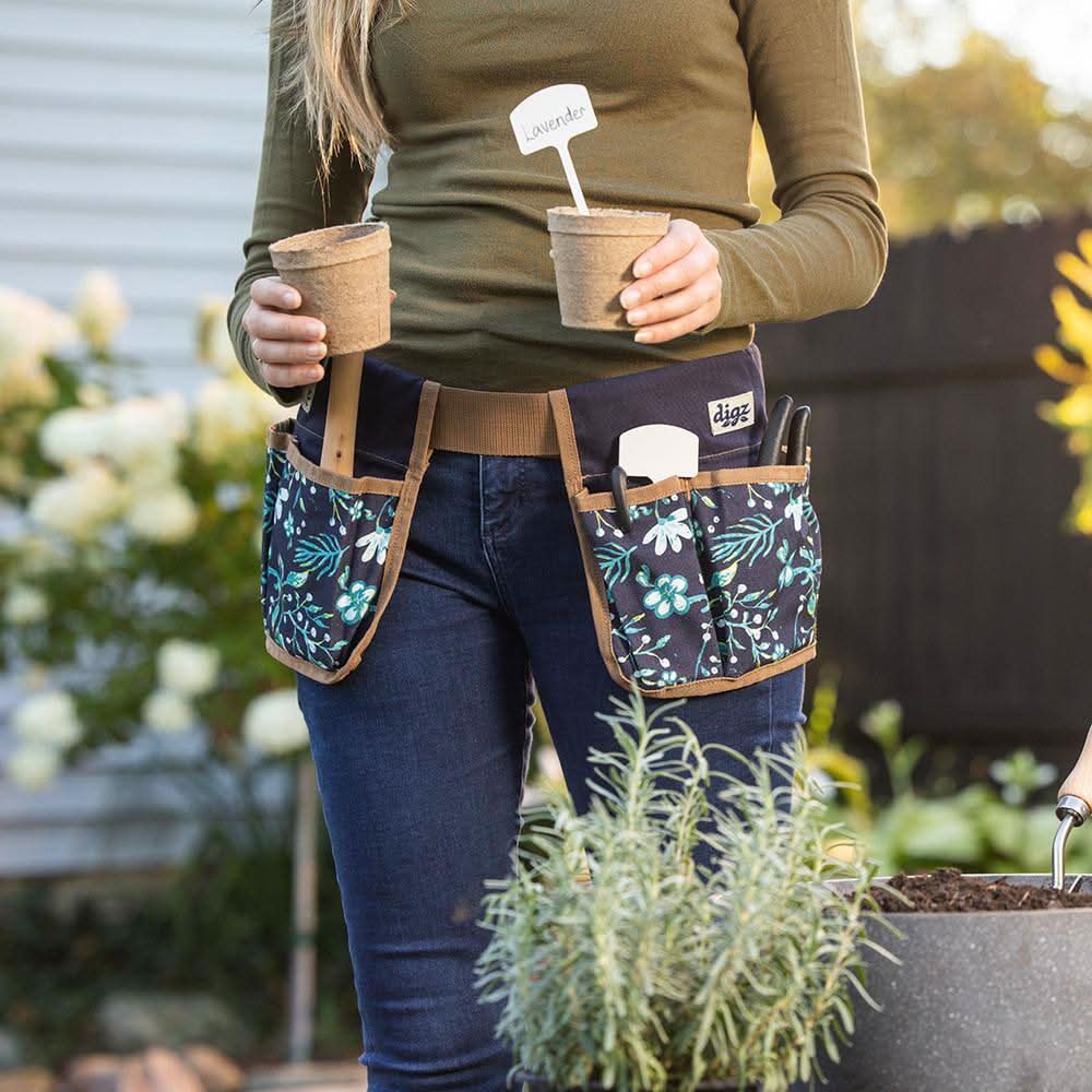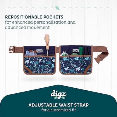 Carry your favorite gardening tools and essentials in style with the Digz Gardening Tool Belt. The left and right pockets can be repositioned to the sides for enhanced movement and prevents tools from spilling out. This durable tool belt is crafted from a soft cotton canvas for all-day comfort and features a quick release buckle strap design for easy on and off. California residents see Prop 65 WARNINGSWARNING: Cancer and Reproductive Harm - www.P65Warnings.ca.gov • Size: Size 1 • female