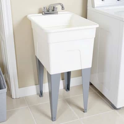 Mustee Utilatub Combo 24 In. X 18 In. Polypropylene Floor Mounted Laundry Tub In White