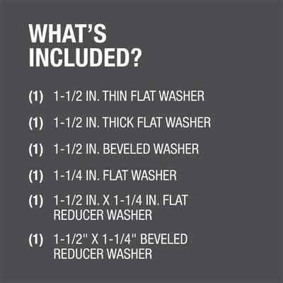 Assorted Washers are designed for use with plastic or brass tubular slip joint plumbing connections. The washers include 1-1/2 in. and 1-1/4 in. sizes with a maximum working pressure of 15 psi. Oatey products have earned the trust of plumbing professionals for over 100 years. ⚠ WARNING: Cancer and Reproductive Harm - www.P65Warnings.ca.gov Size: 1-1/4in x 1-1/2 in