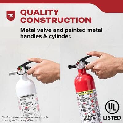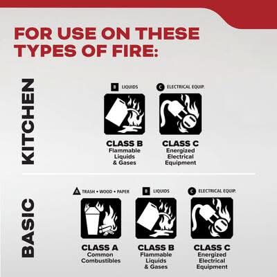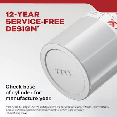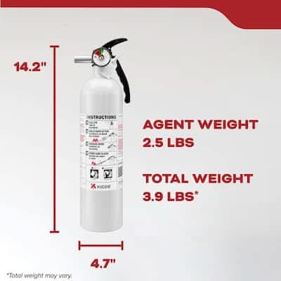 Help protect your home and family with the Kidde Fire Extinguisher for Home, Office, Dorm, Residential 1-A:10-B:C engineered to combat basic fires in your home including trash, wood, paper (Class A), liquids and gases (Class B), and electrical equipment (Class C). The simple and reliable operation is designed to combat fire hazards using the PASS (Pull, Aim, Squeeze, Sweep) firefighting method . Molded from lightweight aluminum and fitted with a simple-to-read pressure indicator, the durable valve assembly is designed for years of service. The strap bracket lets you mount the extinguisher in an easily accessible place so it's always ready for an emergency. The easy-to-pull safety pin gives you quick access and an ergonomic, rust and impact-resistant steel handle provides a remarkably comfortable grip. Contains 2.5 lbs. of monoammonium phosphate fire-extinguishing agent. Note that the dry chemical agent in this fire extinguisher is non-toxic but may cause skin irritation. Place a fire extinguisher within easy reach and on every level of your home where fires are more likely to start. Residential, single-use only. Dispose and replace if used, discharged, or if the fire extinguisher is over 12 years old. UL Listed. 6-year limited manufacturer's warranty.