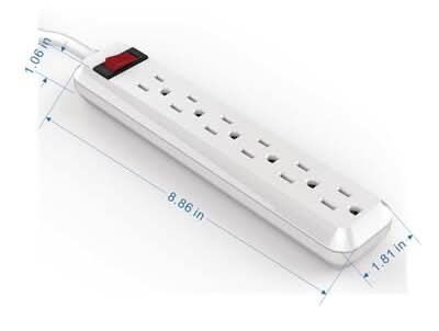The 4 ft. 6-Outlet Power Strip with 45 Degree Flat Angle Plug, White is an ideal solution for small home use with basic function and competitive price. This power strip features a heavy-duty cord for durability. It offers a convenient reset switch to eliminate the need for unplugging. Size: 4 ft