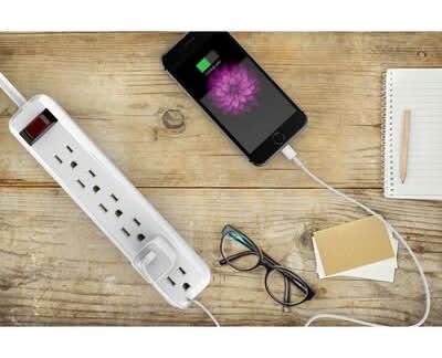 4 Ft. 6-Outlet Power Strip With 45 Degree Flat Angle Plug, White