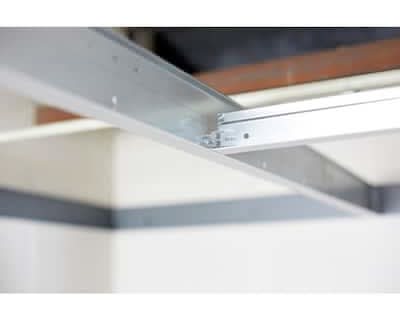 The USG Donn Brand SDX/SDXL Acoustical Suspension System is the most widely used acoustical suspension system available. It is an economical, simple and versatile system that allows for maximum plenum access to utilities like electrical, plumbing and HVAC. Made with a galvanized steel body that inhibits rust, it is twist resistant, ensures paint adhesion, and offers a clean look without exposed steel edges. It also offers appropriate load-carrying capacities for acoustical panels, light fixtures and air distribution elements. Ideal for the commercial remodeler or do-it-yourselfer, the system has a patented quick-release cross-tee clip for easy installation and provides a square, sturdy ceiling that can be used for fire-rated or general applications.