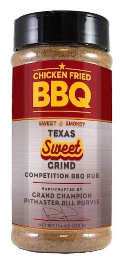 Chicken Fried BBQ's Texas Sweet Grind is the next installment in Bill Purvis' line of Texas inspired, championship BBQ rubs. Texas Sweet Grind is a perfectly balanced blend of sweet and smokey, making it an ideal all-purpose rub. Great as a standalone rub or layered in competition BBQ style cooking.