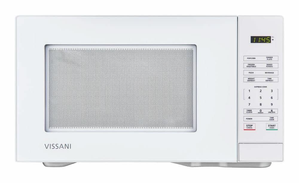 Vissani 1.1 cu. ft. Countertop Microwave puts delicious cooking just a touch a way. The 5-preprogrammed 1-touch cooking menus and 3-auto-defrost menus makes mealtimes so easy. Featuring a spacious gray, 1.1 cu. ft. interior that accommodates a wide variety of dishes, this powerful 1000-Watt microwave has 10 power levels that give you a wide variety of cooking possibilities. 2-step child lock, prevents door from being opened accidentally, while Warning: Cancer and Reproductive Harm - www.p65warnings.ca.gov Color: White
