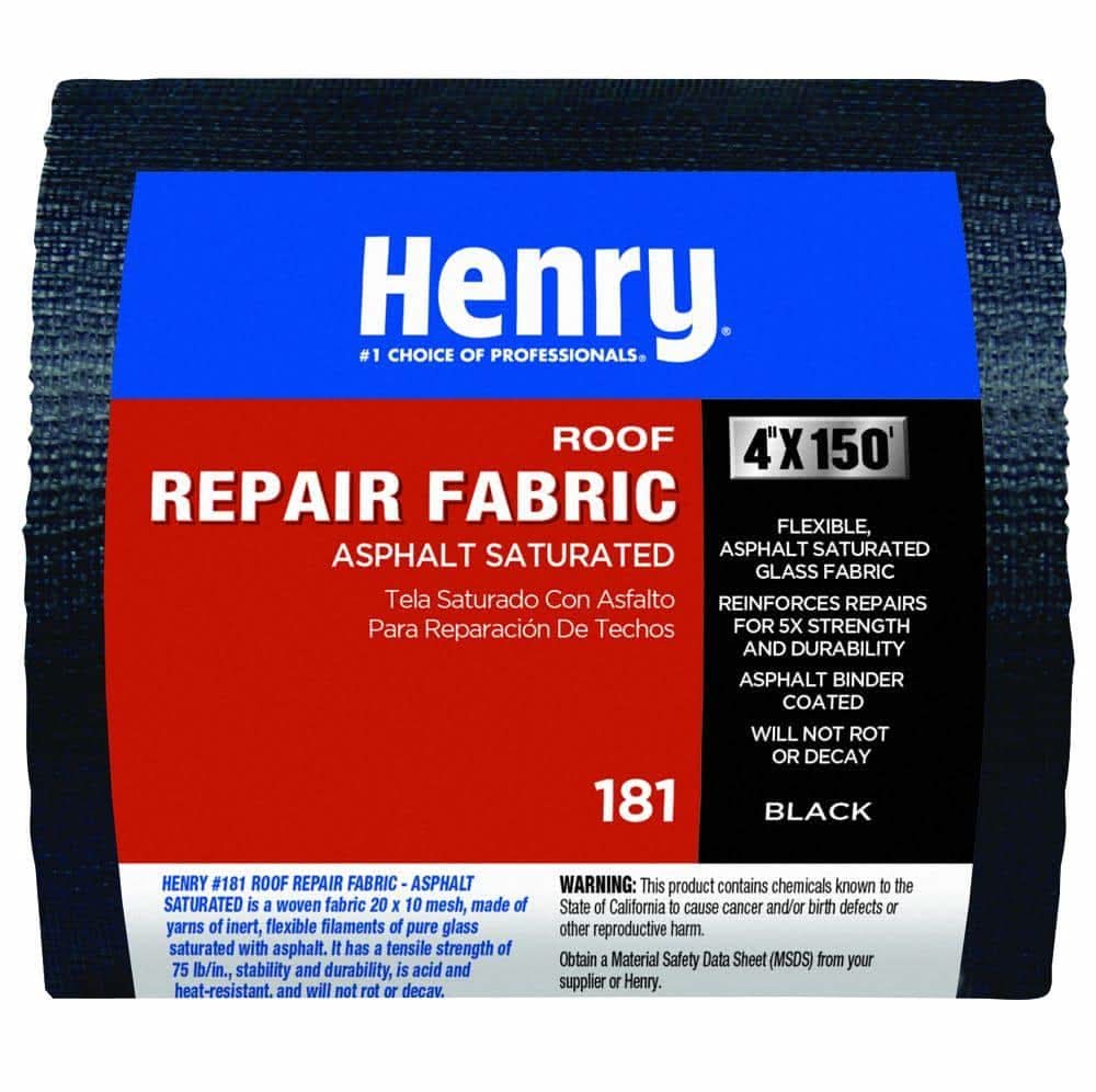 Henry 181 Repair Fabric is a woven fabric, made of flexible filaments of pure glass saturated with asphalt. It has tensil strength of 75 lbs. per in., giving it stability and durability. It is also acid and heat resistant, and won't rot or decay. The fabric is leak resistant, and helps you easily repair your roof. This product can expose you to chemicals including Benz[a]anthracene, which is known to the State of California to cause cancer. For more information go to: www.P65Warnings.ca.gov. • Color: Black • Size: 4 in X 150 ft