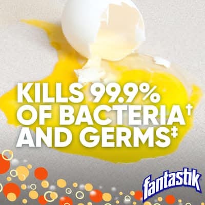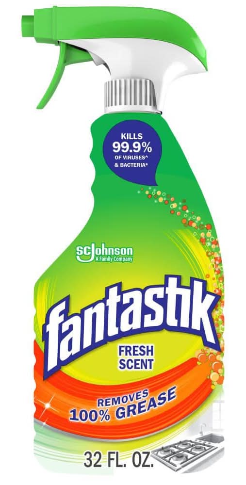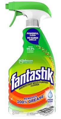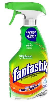 Fantastik All-Purpose Disinfectant Cleaner kills 99.9% of bacteria† and germs‡ and removes 100% grease so even the toughest kitchen messes are no match for it. Our disinfectant spray powers through tough grease and grime while leaving behind no smeary residue. Use throughout the kitchen and around the house on hard, non-porous surfaces including countertops, cabinets, stainless steel, chrome fixtures, small appliances, and porcelain surfaces.To disinfect surfaces, spray surface until thoroughly wet, then let stand for 5 minutes before wiping clean. Rinse food contact surfaces with water after use. Spend less time cleaning and more time living without harsh smells from cleaning solvents with Fantastik All-Purpose Cleaners.†Escherichia coli (E. coli), Salmonella choleraesuis (Salmonella), Staphylococcus aureus (Staph), Streptococcus pyogenes (Strep), Listeria monocytogenes (Listeria).‡Pseudomonas aeruginosa (Pseudomonas), Staphylococcus aureus (Staph), Salmonella choleraesuis (Salmonella), Rhinovirus Type 37 (common cold), Influenza A (Hong Kong) Virus (Flu). • Sc Johnson & Son, Racine,WI,53403-2236 • Packaging: Reusable