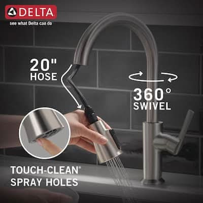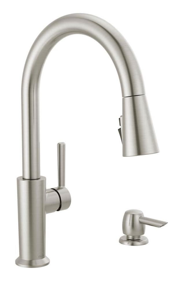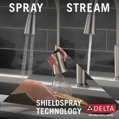 The Emery kitchen faucet offers an unrestrained look and subtle details, bringing a contemporary style into your kitchen. Delta magna tite Docking uses a powerful integrated magnet to set your pull down sprayer precisely into place and hol CALIFORNIA PROP 65 WARNING This product can expose you to Lead, which is known to the State of California to cause cancer and birth defects or other reproductive harm. For more information go to www.P65Warnings.ca.gov. Wash hands after installing or removing the product.