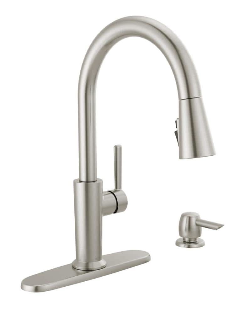 Delta Emery Single-Handle Pull-Down Sprayer Kitchen Faucet With Shieldspray And Soap Dispenser In Spotshield Stainless Steel