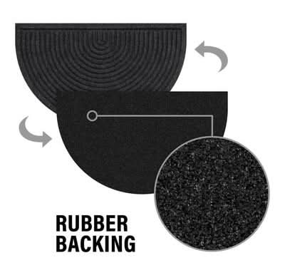 Help keep your floors clean with this 18 in. x 30 in. Onyx half round rib doormat. The synthetic surface and recycled rubber door makes this the perfect chose for any entrance to your home or business. The mat's durable synthetic surface helps absorb water and resist stains. The attractive molded ribbed surface is designed to scrape dirt and debris off shoes, keeping the dirt outside. This hefty mat stays where you put it and is weather resistant so it can be used outside year round. • Color: Black • Size: 18x30 in