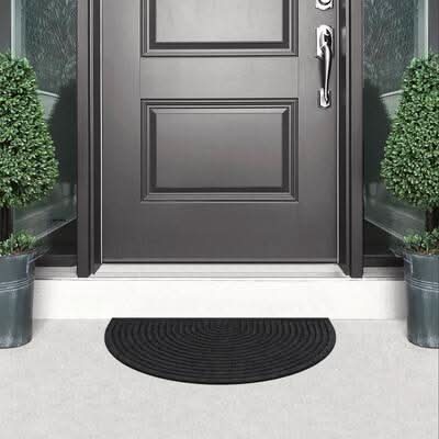 Trafficmaster Onyx Rib Black 18 In. X 30 In. Rubber Half Round Non-Slip Indoor Outdoor Door Mat