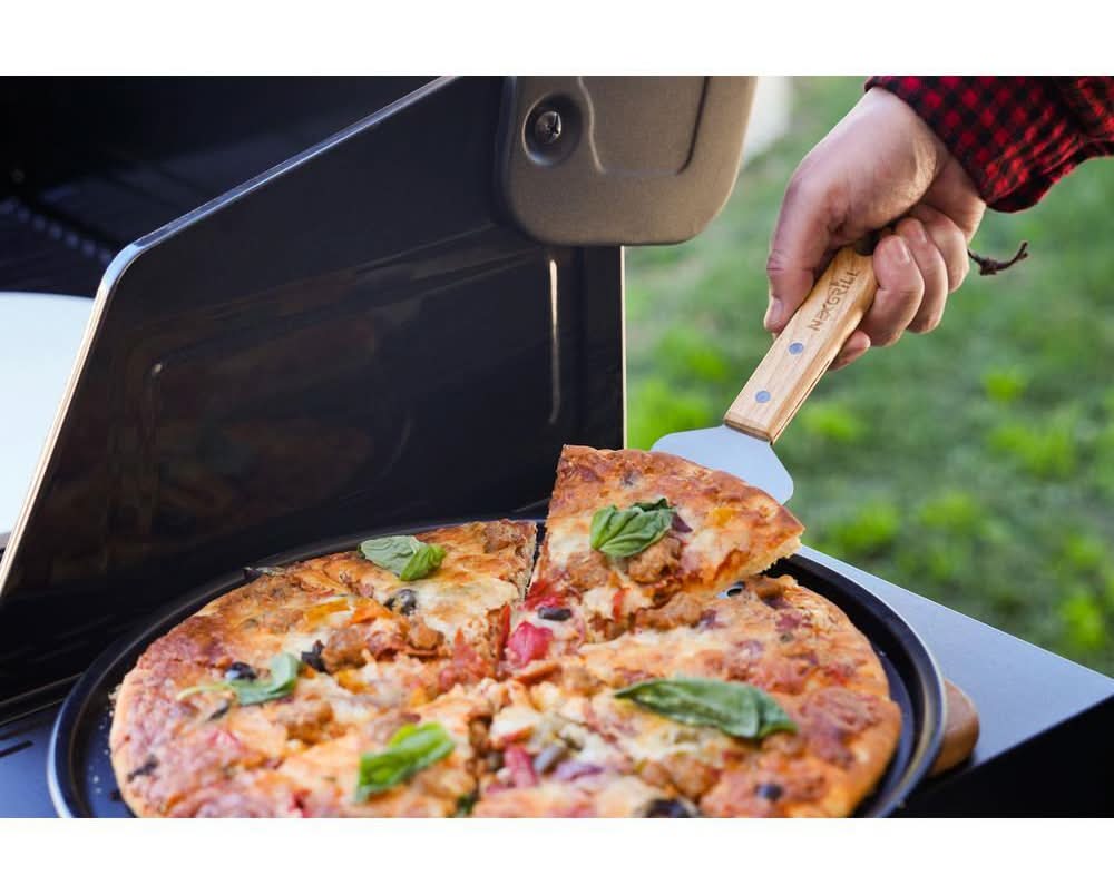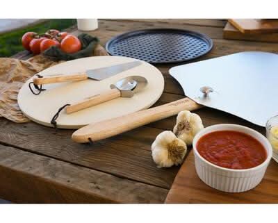 The Nexgrill Pizza Grilling and Pizza Serving Kit provides all the accessories you need to prepare and share pizza, fresh off the grill. Get that crispy pizza crust you love with the help of a premium cordierite pizza stone that evenly transfers heat, retains heat, and absorbs dough moisture. This 5-piece premium pizza tool set includes reinforced stainless steel pizza serving tools, a pizza stone and pizza pan. The serving tools include a pizza cutter wheel and pizza serving spatula.
