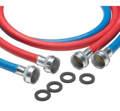 Make installing hot and cold lines easy with the Everbilt 5 ft. Red and Blue Fill Hose. The reinforced PVC construction gives each hose superior flexibility and durability. Included rubber washers make a secure connection. The set incudes one red hose and one blue hose. They can withstand temperatu This product can expose you to chemicals including Lead, which is known to the State of California to cause cancer and birth defects or other reproductive harm. For more information go to www.P65Warnings.ca.gov. • Color: Red-blue • Size: 5 ft