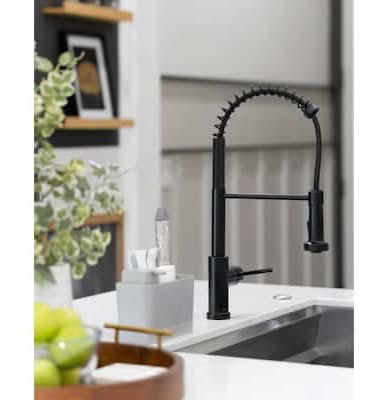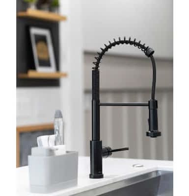 Glacier Bay Paulina Single-Handle Spring Neck Pull Down Sprayer Kitchen Faucet In Matte Black