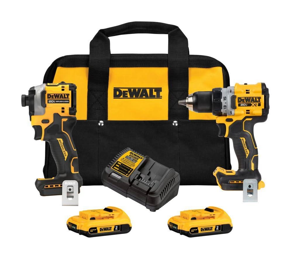 This 20V MAX* Brushless 2-Tool Kit includes one XR drill/driver, ATOMIC impact driver, two 2.0Ah batteries, a charger, and kit bag.Both tools are equipped with a high-output brushless motors to help you tackle demanding projects. The DCD800 Drill/Driver is equipped with a 3-position, pivoting LED for enhanced visibility in dimly lit work areas. At less than 4 in. in length, the ATOMIC 20V MAX* 1/4 in. Brushless Cordless 3-Speed Impact Driver can handle tight applications like narrow cabinetry or framing WARNING: Cancer and Reproductive Harm - www.P65Warnings.ca.gov - Some dust created by power sanding, sawing, grinding, drilling, and other construction activities contains chemicals known to the State of California to cause cancer, birth defects or other reproductive harm. Some examples of these chemicals are: lead from lead-based paints, crystalline silica from bricks and cement and other masonry products, and arsenic and chromium from chemically-treated lumber. Your risk from these exposures varies, depending on how often you do this type of work. To reduce your exposure to these chemicals: work in a well ventilated area, and work with approved safety equipment, such as those dust masks that are specially designed to filter out microscopic particles. Size: 4 In