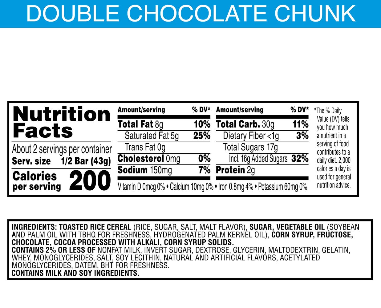 Make snack time a little sweeter and more fun with the irresistible taste of Rice Krispies Treats Mega Bars Large Marshmallow Snack Bars Double Chocolatey Chunk. Chocolate-lovers and fans of Rice Krispies Treats alike will love the taste of this sweet, decadent snack. Each bar is made with puffed rice cereal, scrumptious chocolate, and the taste of chewy, gooey marshmallows for a delicious, ready-to-eat treat wherever you go; A delicious snack bursting with chocolatey goodness, each package contains one marshmallow-flavored bar that's perfect for snacking at school, the office, lunchtime, at the game, and more. Rice Krispies Treats Mega Bars make great additions to goodie bags, gift baskets, or as a surprise in a care package. Satisfy your sweet craving with the marshmallowy goodness and on-the-go convenience of Rice Krispies Treats Mega Bars Large Marshmallow Snack Bars. • Brand: Kellogg's • Flavor: Double chocolatey chunk