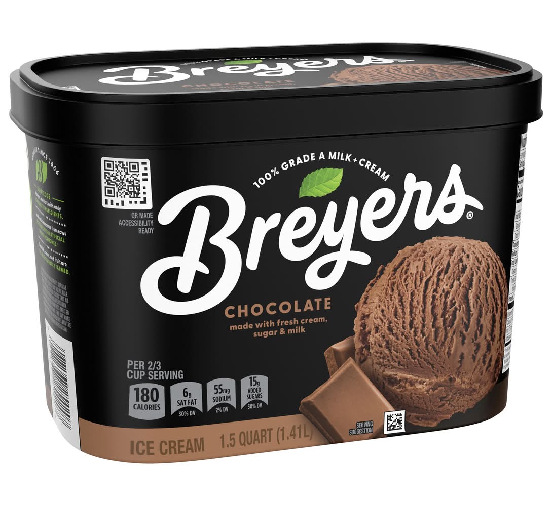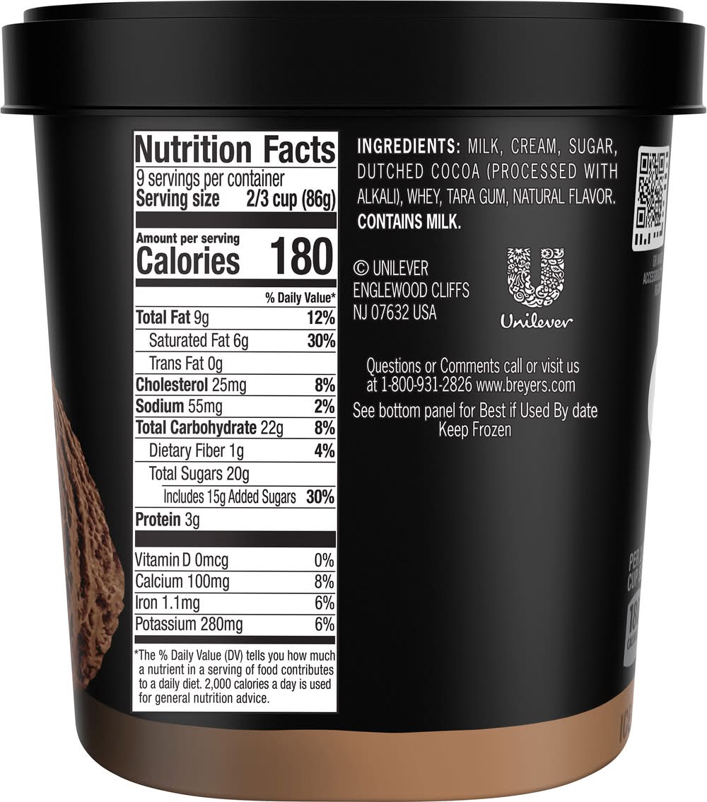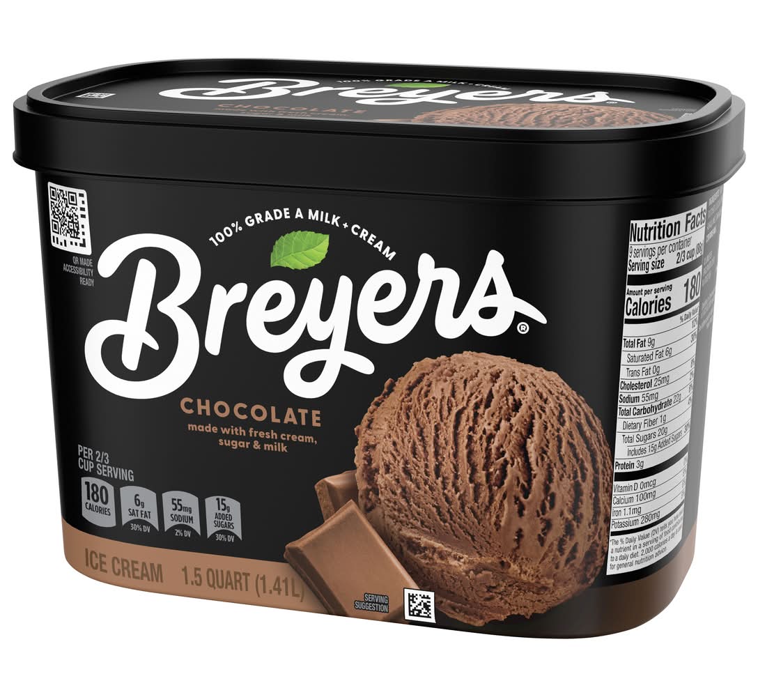 A delicious treat that's never chocoLATE to a party. Made with real Dutch cocoa and fresh cream, it's a great answer to your sweet tooth (or teeth). • Brand: Breyers • Flavor: Chocolate • gluten-free