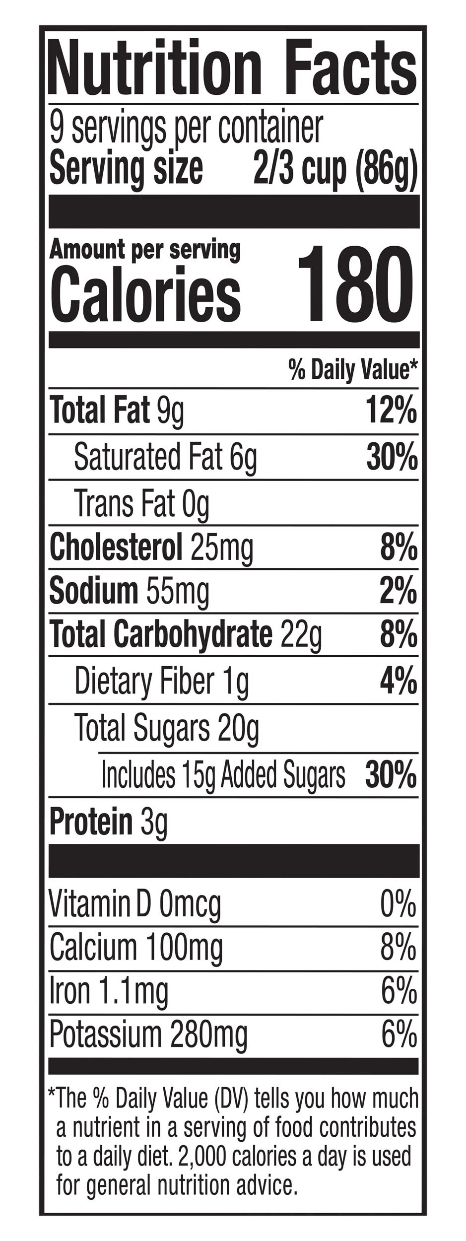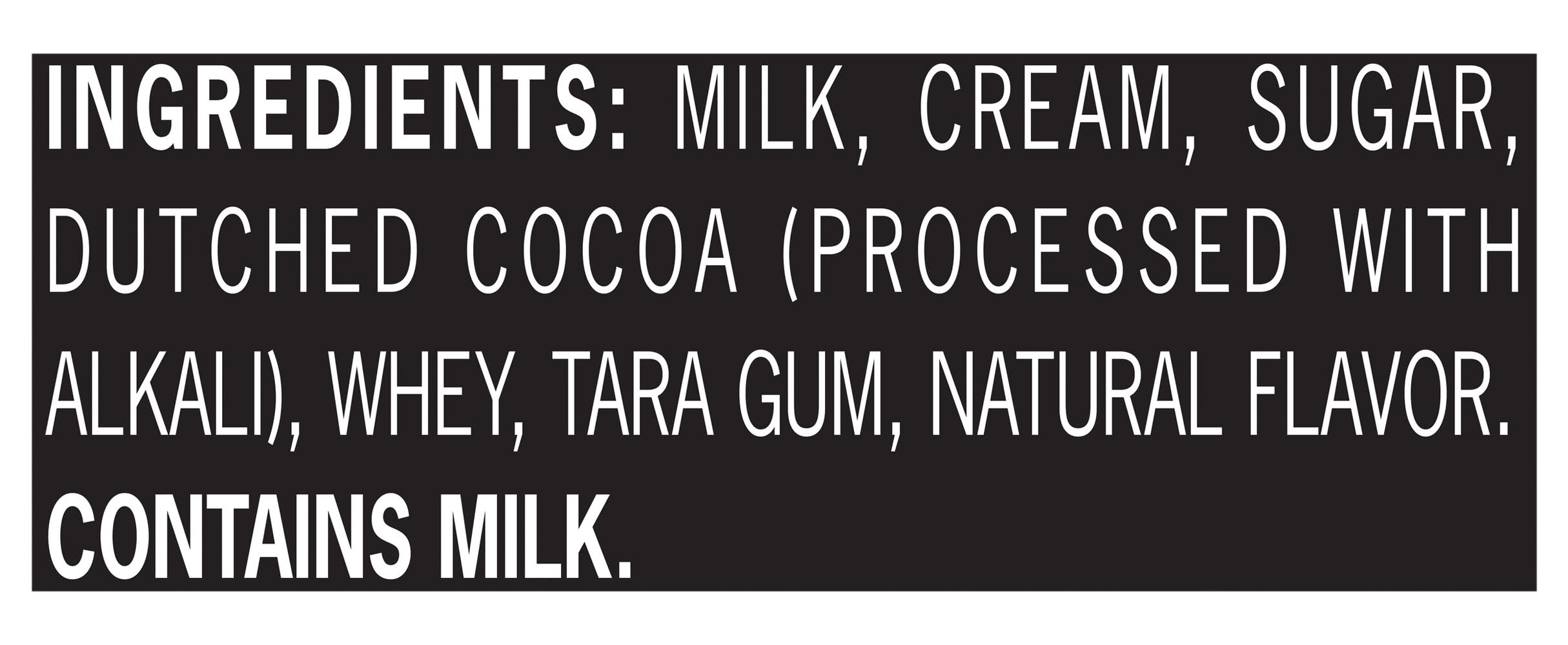 Ingredients: Milk, Cream, Sugar, Dutched Cocoa (Processed with Alkali), Whey, Tara Gum, Natural Flavor Contains: Milk