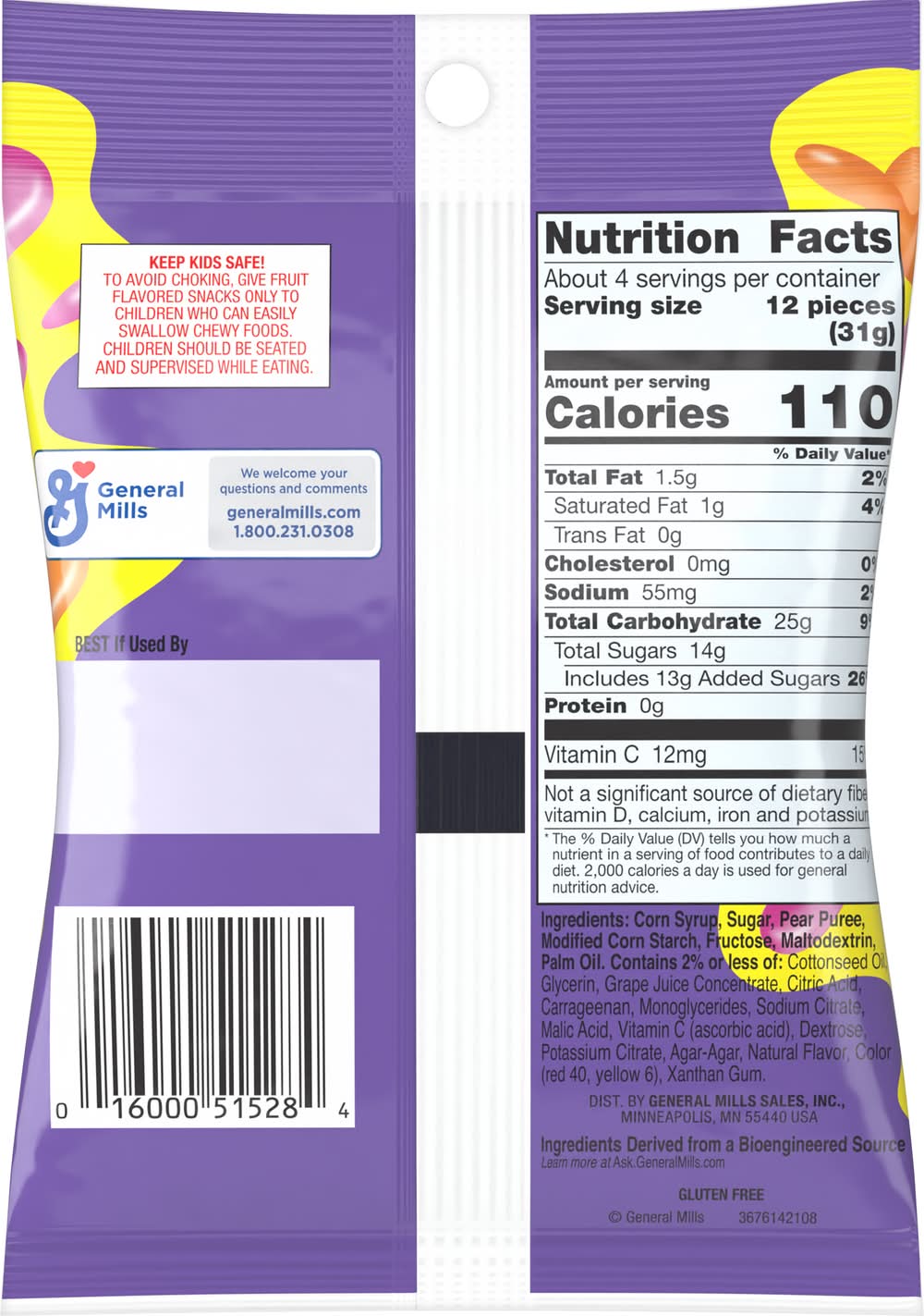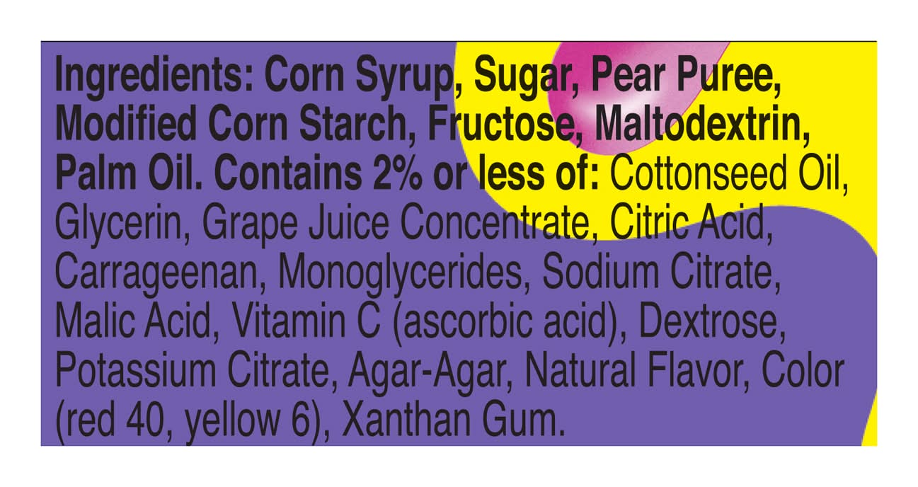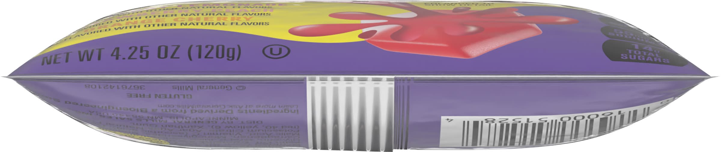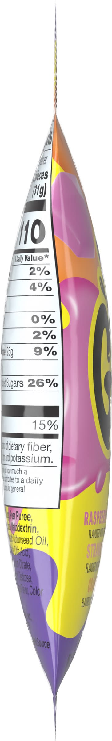 Experience a burst of flavors in this fun, fruity, quick snack! • Brand: Gushers • Flavor: Raspberry lemonade-strawberry peach-orange cherry • kosher, gluten-free