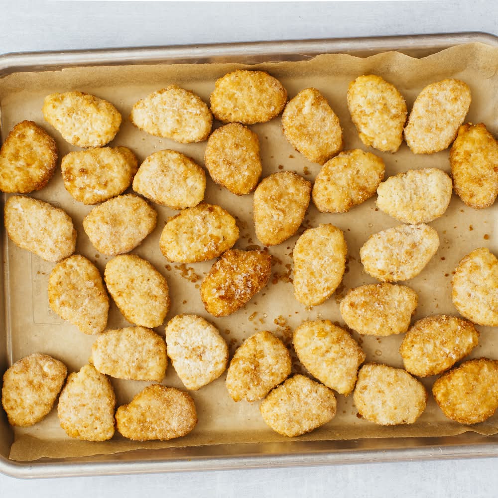 Directions for use: Heating Instructions (appliances vary, heating times approximate) Oven (preferred): preheat oven to 425 degrees F. Place Frozen chicken nuggets in a single layer on a baking Sheet brushed lightly with oil. Bake until hot, about 14 minutes, or to desired color and crispiness, Turning nuggets over halfway through cooking time. Heating Instructions (appliances vary, heating times approximate) Microwave: place frozen chicken nuggets in a single layer on a paper towel on a microwave-safe plate. Set microwave to high heat. Heat until hot, 1-1 1/2 minutes, turning nuggets over halfway through cooking time. Keep frozen. Storage recommendation: Keep frozen.