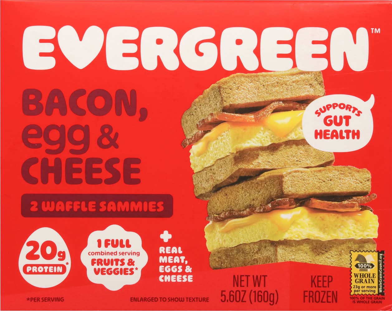 Evergreen Bacon Egg and Cheese Waffle Sammies Breakfast Sandwich (5.6 oz)