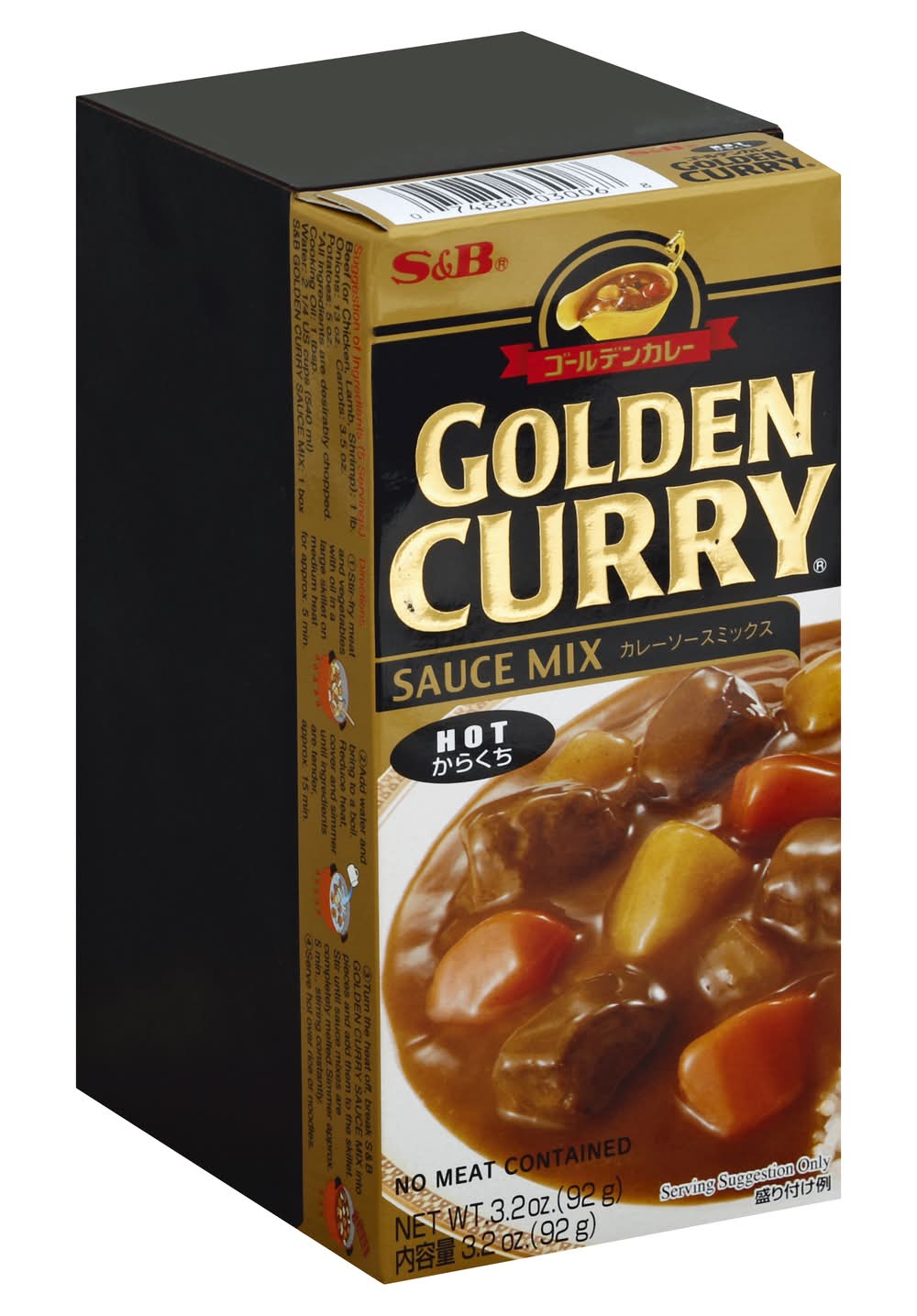 Directions: keep refrigerated in airtight container after opening. suggestion of ingredients (5 servings): beef (or chicken, lamb, shrimp): 1 lb onions: 13 oz; carrots: 3.5 oz; potatoes: 5 oz. all ingredients are desirably chopped. cooking oil: 1 tbsp; water: 2-1/2 us cups (540 ml); s&b golden curry sauce mix: 1 box. 1. stir-fry meat and vegetables with oil in a large skillet on medium heat for approx 5 min. 2. add water and bring to a boil. reduce heat, cover and simmer until ingredients are tender, approx 15 min. 3. turn the heat off, break s & b golden curry sauce mix into pieces and add them to the skillet. stir until sauce mixes are completely melted. simmer approx 5 min, stirring constantly. 4. serve hot over rice or noodles.