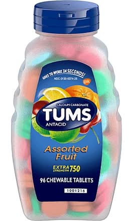 Tums Antacid, Extra Strength, 750, Chewable Tablets, Assorted Fruit