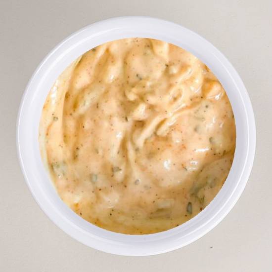 A creamy, tangy blend of dill, mayonnaise, pickles, and zesty seasonings, including our Cajun seasons. It's tartar sauce with a little POW! added to it ... perfect for pairing with any seafood. House made.