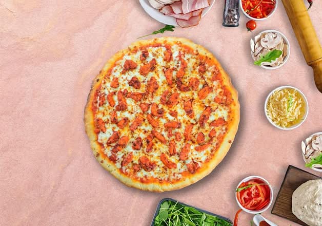 Brace your taste buds for a spicy treat, starring buffalo sauce, juicy chicken, mozzarella, and marinara, sprinkled with chopped garlic.