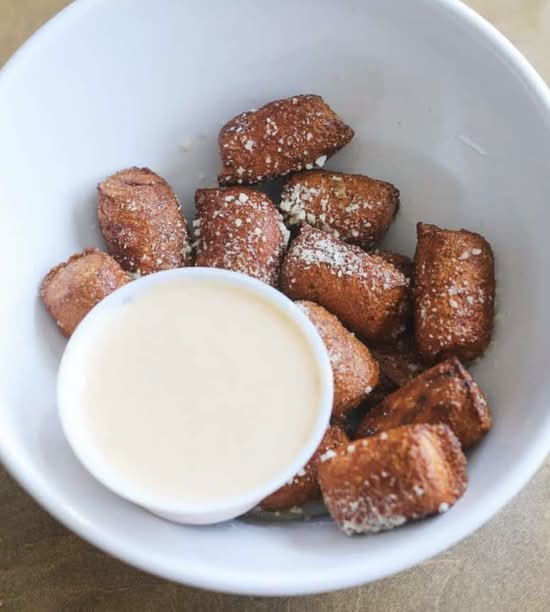 Lightly fried pretzel bites seasoned and tossed with parmesan cheese and served with house made queso.