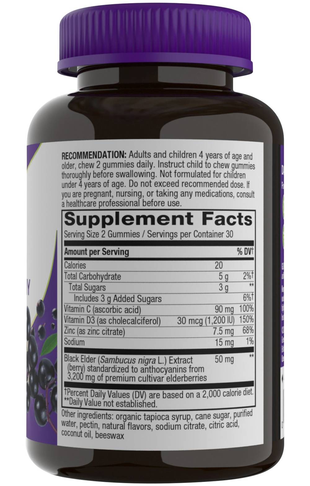 Nature's Way Sambucus Gummies¤ Standardized Elberberry ¤ ≈ Gelatin-Free Made with Pectin Sweetened with Tapioca & Dried Cane Syrups ≈Supports healthy immune functionVitamin C (150% DV) + Zinc (50% DV)Black elderberry extract standardized to BioActive® (flavanoids)Great TastingGelatin FreeGluten Free
