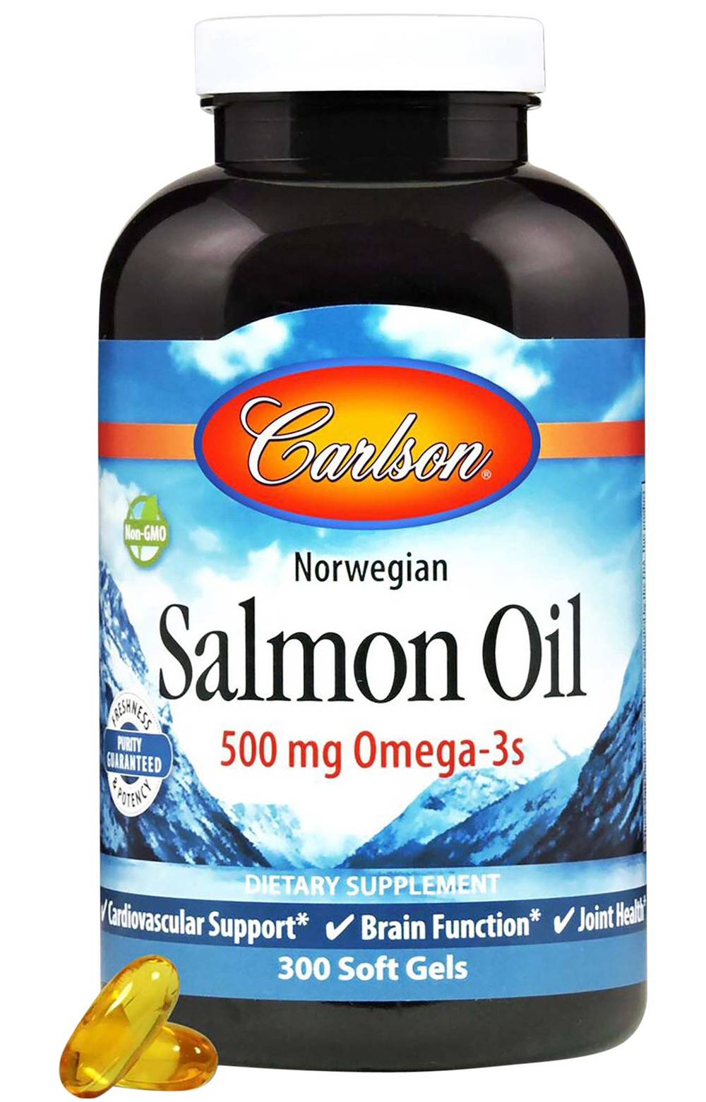 Each Carlson NORWEGIAN SALMON OIL soft gel contains 1 gram (1000 mg) of fish oil extracted from salmon and other fish found in deep, pristine waters.**