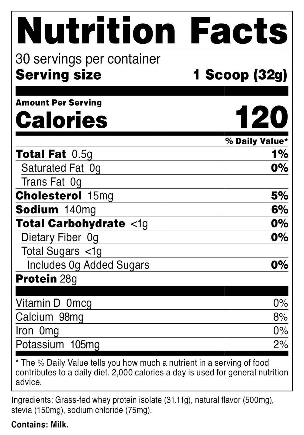 100% Grass-Fed Whey Protein Isolate Powder French Vanilla (2.27 Lbs./30 Servings)