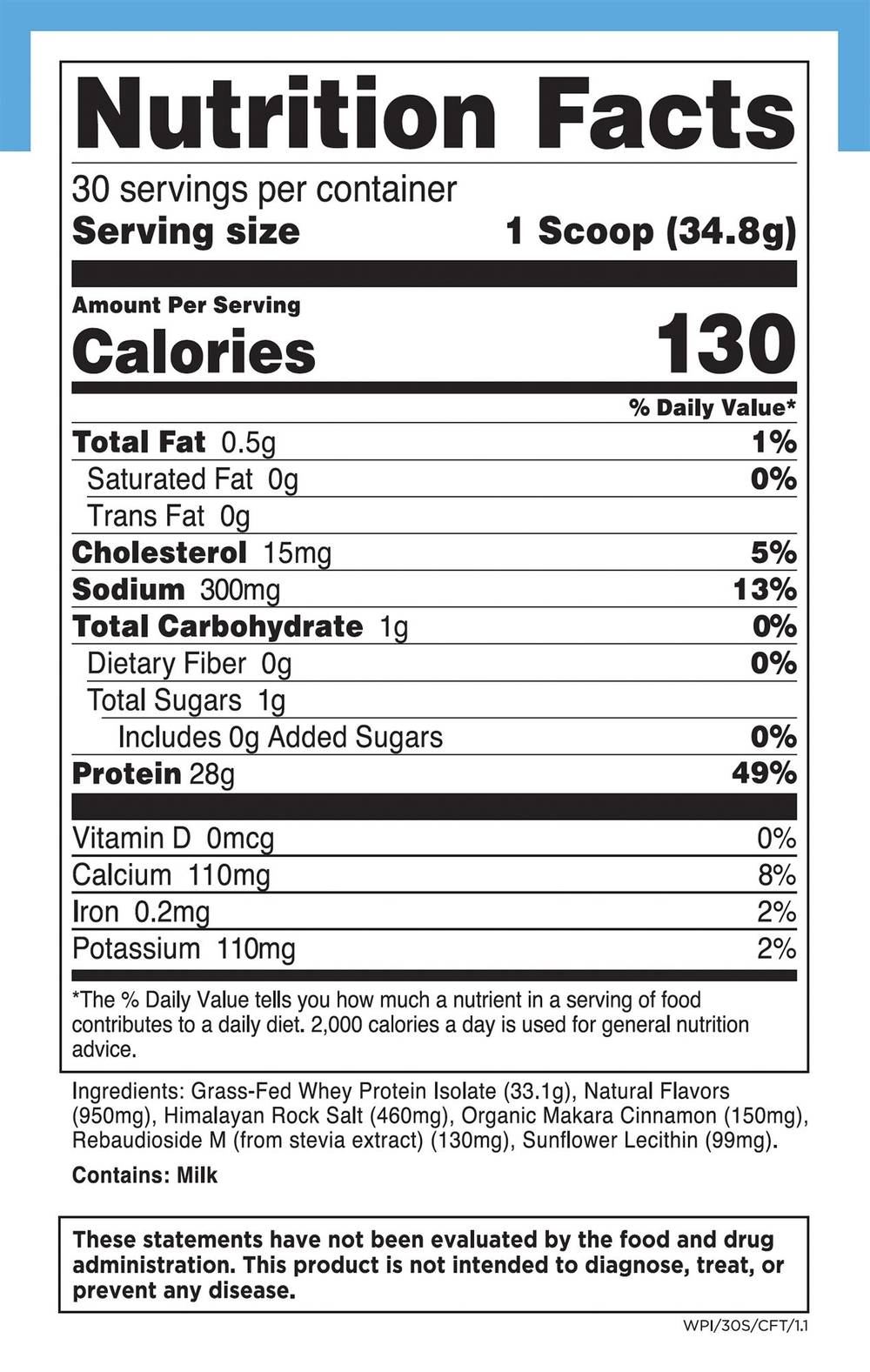 100% Grass-Fed Whey Protein Isolate Powder Cinnamon French Toast (2.30 Lbs./30 Servings)