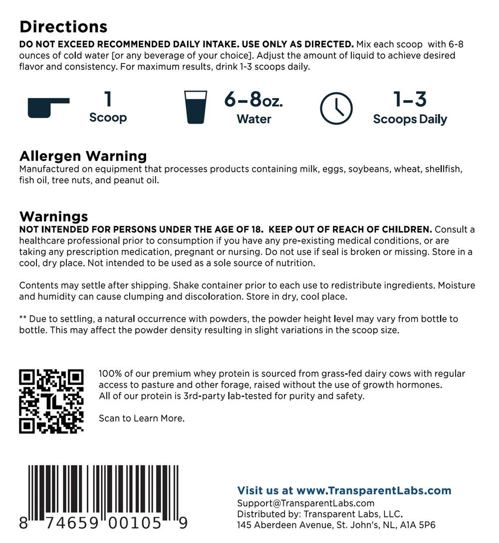 Supports muscle growth and recovery Non-GMO Free of gluten, artificial sweeteners, food dyes, fillers, and preservatives Cinnamon French Toast flavor Transparent Labs 100% Grass-Fed Whey Protein Powder supports muscle growth, recovery, and overall health. Each serving delivers 28g of high-quality whey protein isolate sourced from 100% grass-fed cattle, raised humanely and without the use of growth hormones or hormonal agents. Frequently Asked Questions What is whey protein isolate? Whey protein isolate (WPI) has the highest concentration of protein and BCAAs, while having less carbs, cholesterol, and fat compared to other whey proteins. WPI is also low in lactose and easy on your digestive tract. Are protein shakes good for you?<