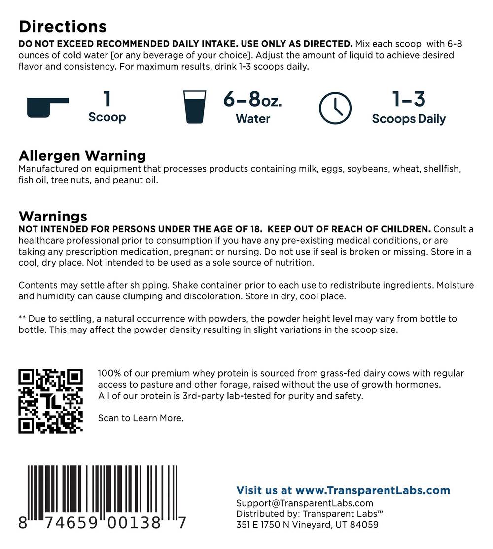 Supports muscle growth and recovery Non-GMO Free of gluten, artificial sweeteners, food dyes, fillers, and preservatives Milk Chocolate flavor Transparent Labs 100% Grass-Fed Whey Protein Powder supports muscle growth, recovery, and overall health. Each serving delivers 28g of high-quality whey protein isolate sourced from 100% grass-fed cattle, raised humanely and without the use of growth hormones or hormonal agents. Frequently Asked Questions What is whey protein isolate? Whey protein isolate (WPI) has the highest concentration of protein and BCAAs, while having less carbs, cholesterol, and fat compared to other whey proteins. WPI is also low in lactose and easy on your digestive tract. Are protein shakes good for you?