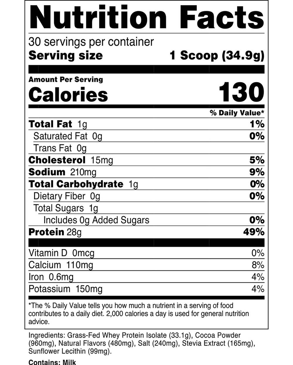 100% Grass-Fed Whey Protein Isolate Powder Milk Chocolate (2.18 Lbs./30 Servings)