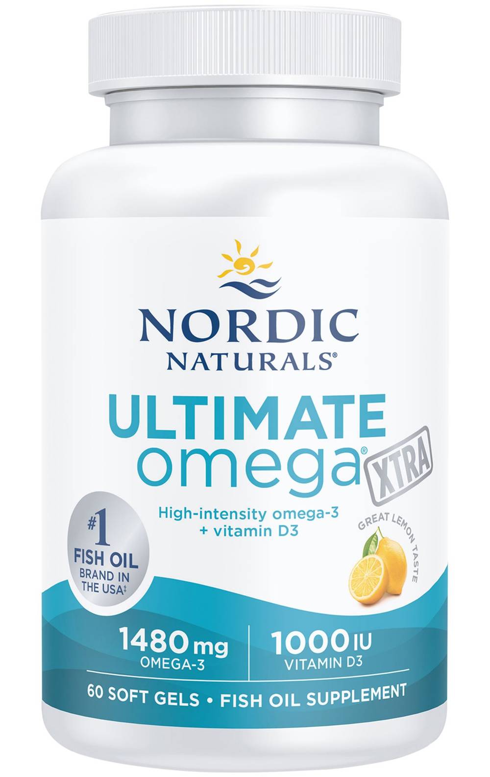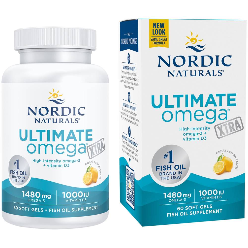 Supports bone, joint, mood, heart, and brain health Non-GMO Verified 3rd-Party Purity Tested Lemon flavor Ultimate Omega Xtra from Nordic Naturals combines pure, high-potency fish oil with vitamin D3 to provide powerful support for your heart, bones, joints, brain, and mood. Each serving delivers 1,000 IU of D3 plus 1,480mg total omega-3s made exclusively from wild-caught sardines and anchovies.