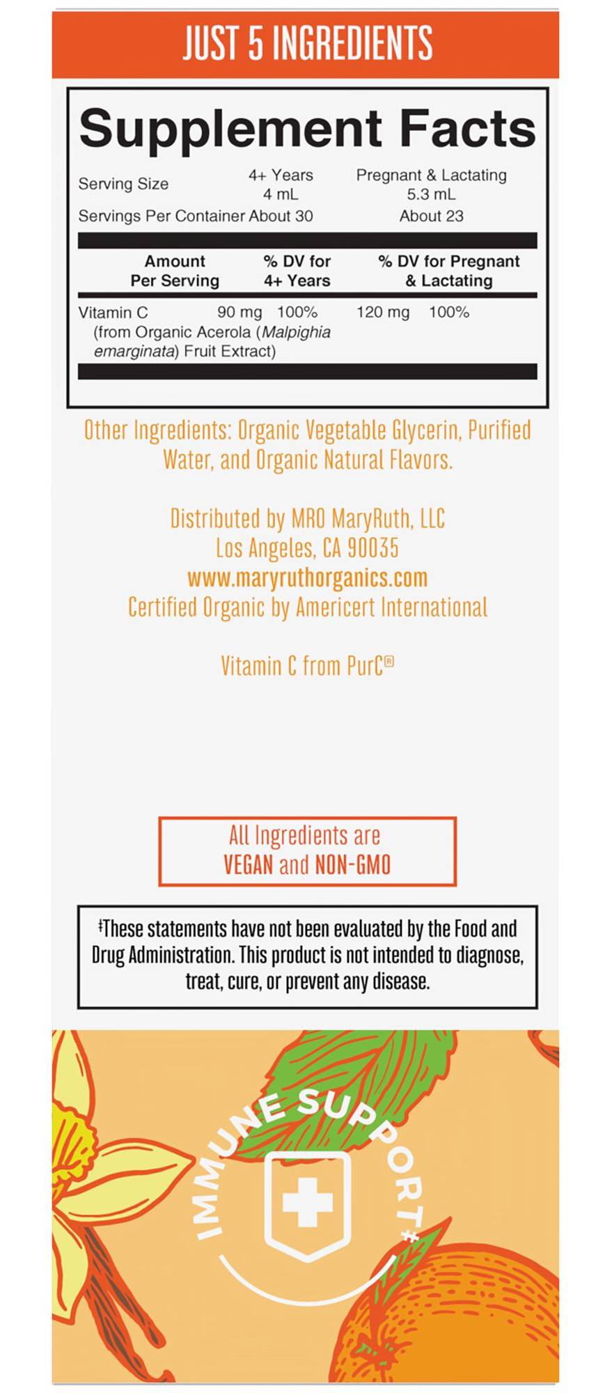 Organic Vitamin C Liquid Drops - Immune Support - Orange Vanilla (4 Fl. Oz. / 30 Servings)