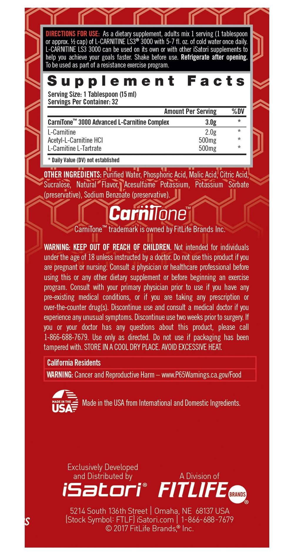 LIQUID L-CARNITINE LS3™ 3000L-CARNITINE LS3 3000 is a delicious stimulant-free, sugar-free, calorie-free, gluten-free supplement delivering three advanced forms of L-Carnitine in every serving. Take L-CARNITINE LS3 3000 daily to experience support for:Promotion of Fat LossImproved Energy ProductionImproved MetabolismConversion of Fat Into Fuel