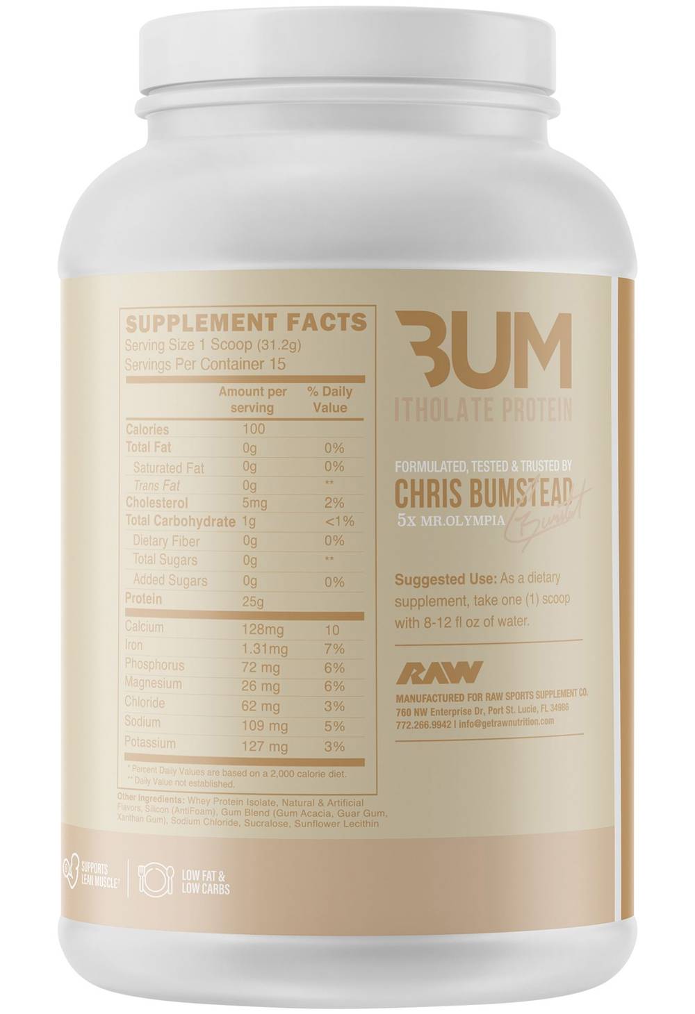 25g of pure whey protein isolate per serving Supports lean muscle tissue and recovery Vanilla Oatmeal Cookie flavor Formulated and flavored by 5x Mr. Olympia Chris Bumstead himself, you can be sure youre getting the highest quality protein and the best-tasting flavors with CBUM Series Itholate Protein Powder. This top-of-the-line protein shake fuels post-workout muscle recovery with 25g of grass-fed, 100% micro-filtered whey protein isolate for optimal digestibility. Frequently Asked Questions What is whey protein isolate? Whey protein isolate (WPI) has the highest concentration of protein and BCAAs, while having less carbs, cholesterol, and fat compared to other whey proteins. WPI is also low in lactose and easy on your digestive tract. Are